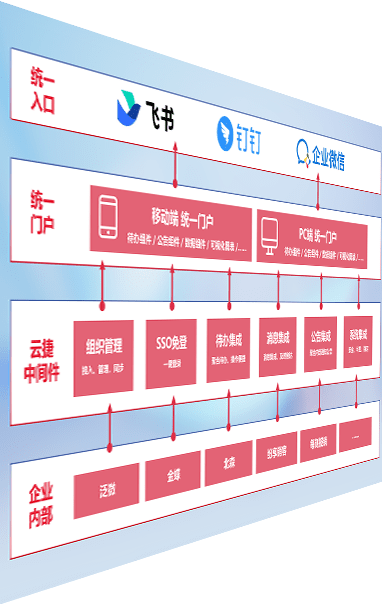 对协作平台提供支持服务,,,支持企业应用与协作平台对接,,,,包含组织同步、、消息集成、、、、待办集成等。。支持目前主流的协作平台:钉钉、、企微和飞书。。。